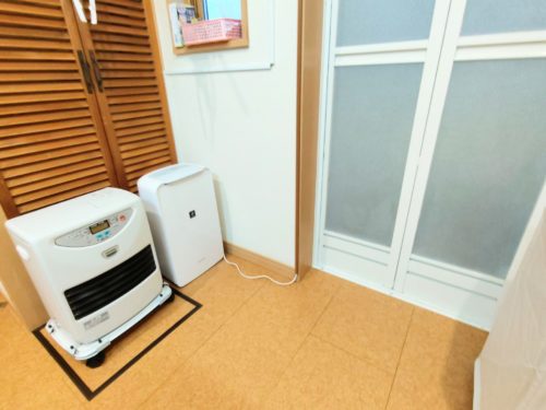 洗面脱衣室には石油ファンヒーターを置き、入浴前にしっかり暖めてからお風呂に入っています。