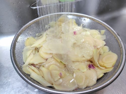 せっかくなので、採れたての新生姜で“ガリ(甘酢しょうが)”を作ることにしました。