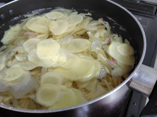 5. 鍋に湯を沸かし、生姜を入れて1〜2分ほどゆでる。