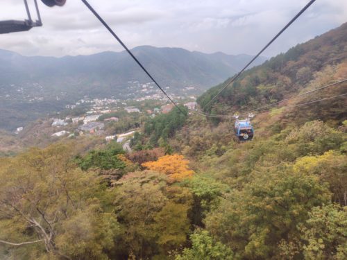 ロープウェイからは少し色づき始めた木々が見えるものの、山のよくある見慣れた景色です。