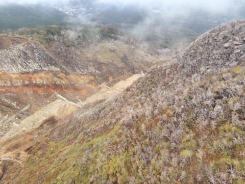 ロープウェイから見る大涌谷の絶景