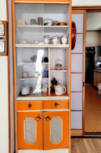 昭和のオレンジ色の食器棚
