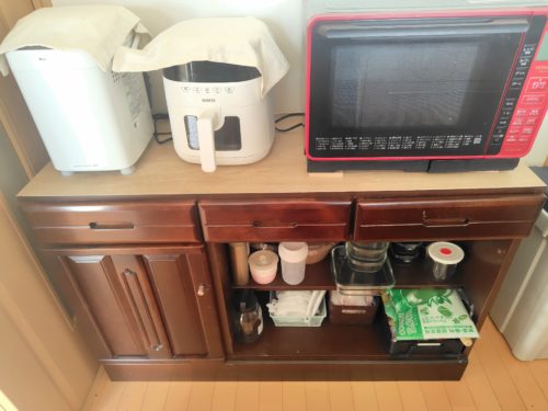 数年前には上部を外して下台だけにし、さらに2年前には開き扉を外して“オープン棚”として使っていました。