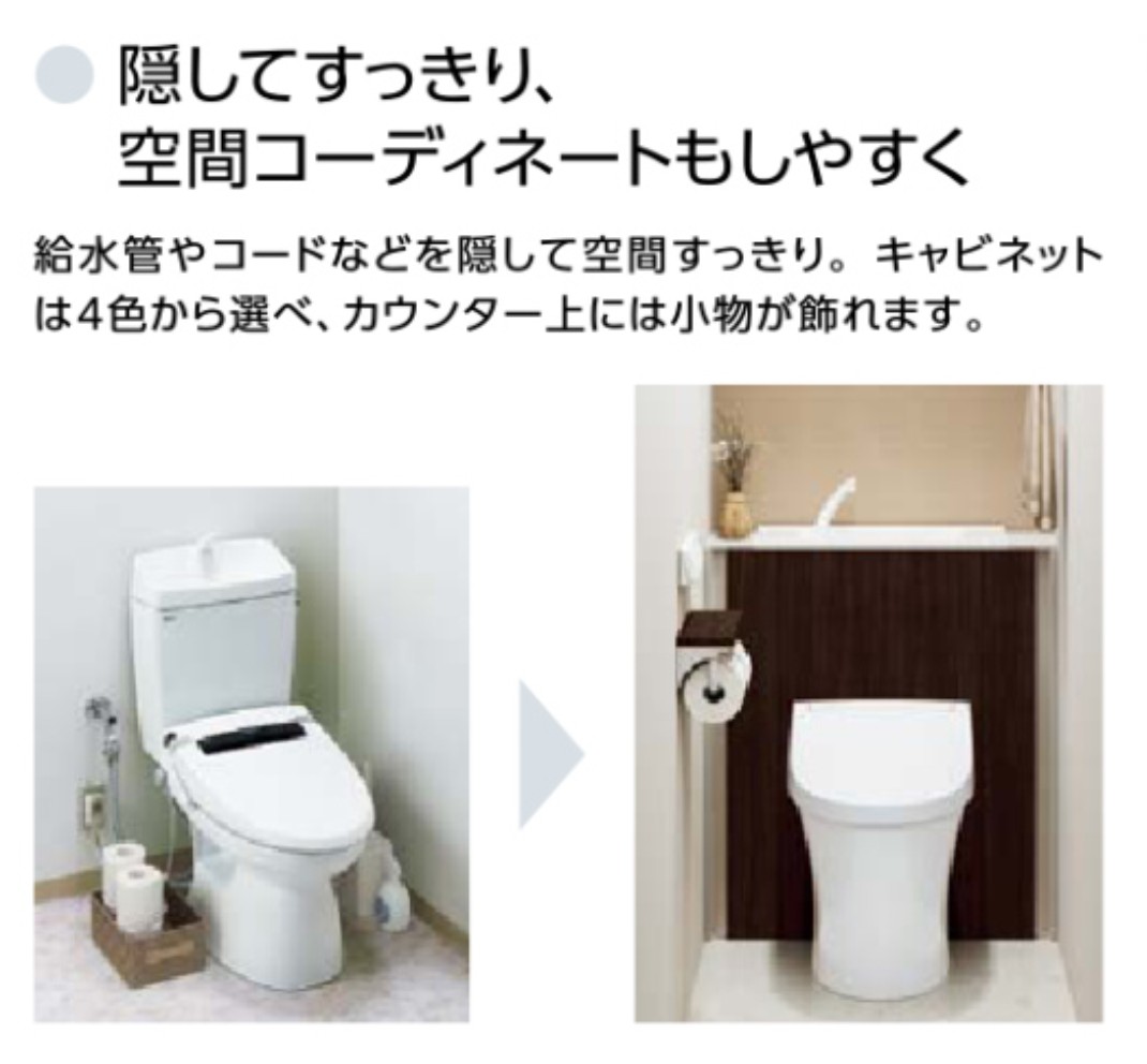 ベーシアピタは、タンクや配管をキャビネット内に隠すことで、