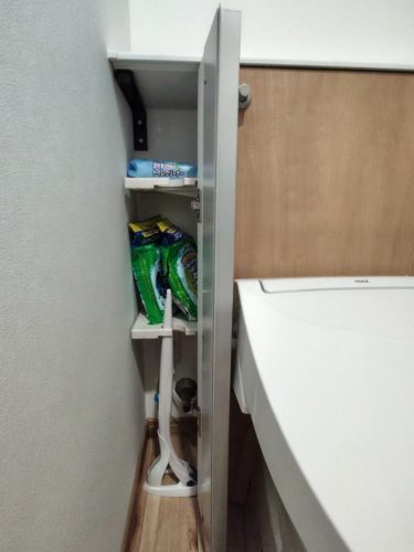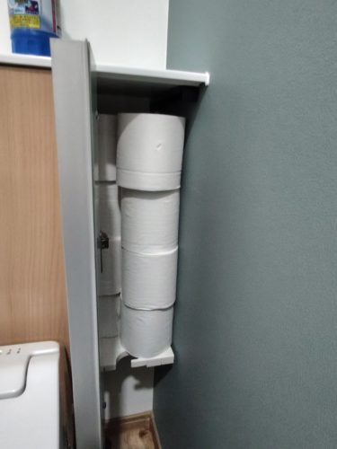 左右2カ所ある収納は、狭そうに見えますが、片側だけでもトイレットペーパーが12ロール以上入ります。