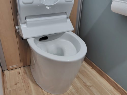 外から見えるのはフラットな天板だけで、ぱっと見はほぼタンクレス。