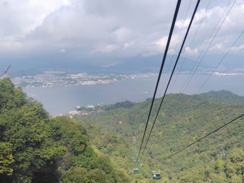 下りのロープウェイでようやく瀬戸内海がお目見え!
