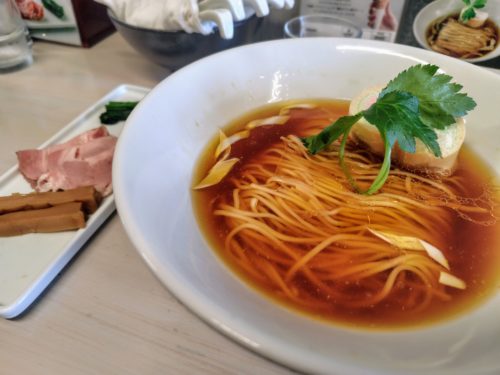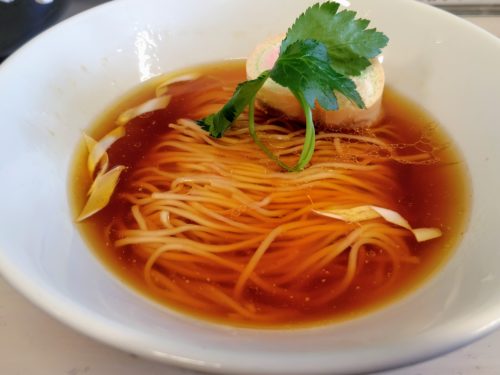 澄んだスープに中細ストレート麺が整然と収まり、見た目からして美しい。