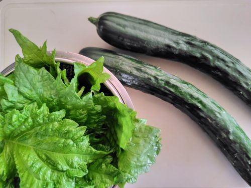 収穫した大葉ときゅうり