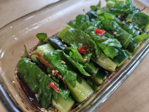 きゅうりのシャキシャキ感、大葉の清涼感、塩昆布とごま油のコク。