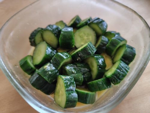 1. きゅうりはスティック状にカットする。