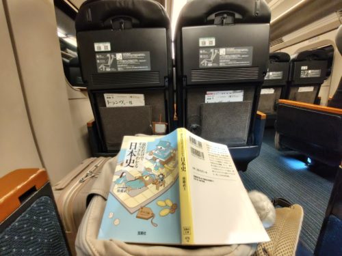 快適な車内で久々の読書(たたし文字がやや見えづらい…by老眼)