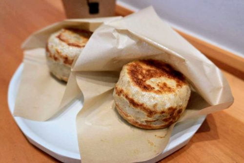 松本城散策では、おやき3種(クリームチーズ味噌・高菜・豚ねぎ味噌)をいただきましたが、外側の皮がこんがり焼かれて熱々なのが最高でした。