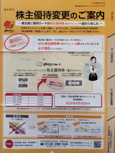 すかいらーく株主優待の電子化によって、