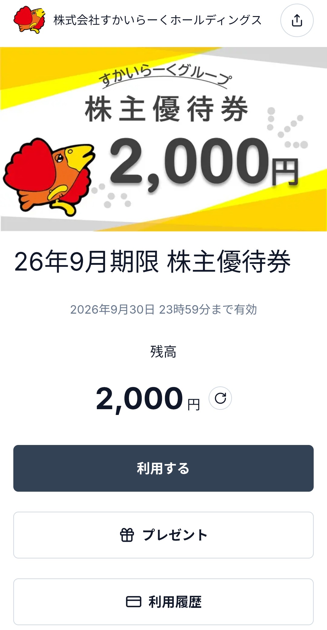 私はすかいらーくHDの株を100株保有しているので、半年に一度2000円分の優待券が届きます。