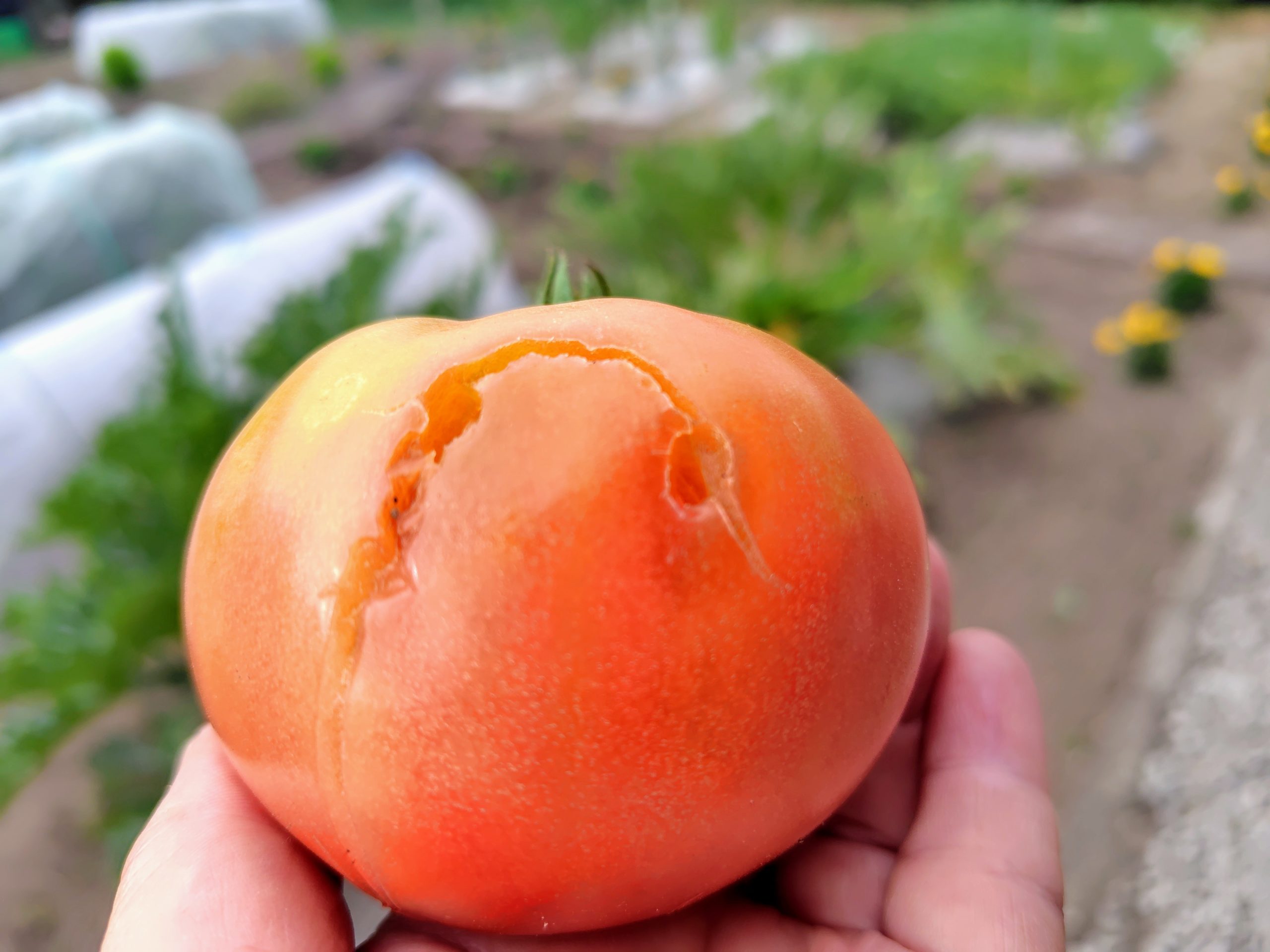 せっかくきれいな大玉トマトができて、喜んでいたんだけどなぁ。