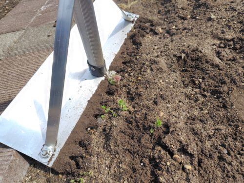 今年も、板切れ使う気満々だったのですが、ホームセンターでアルミ製の整地板が予想外に安く売っていたんですよ。